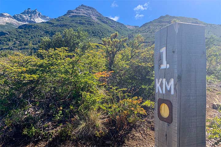 Sendero con buena señalización, empedrado en algunos sectores para mejorar el agarre con pilones indicadores cada 1000 metros.